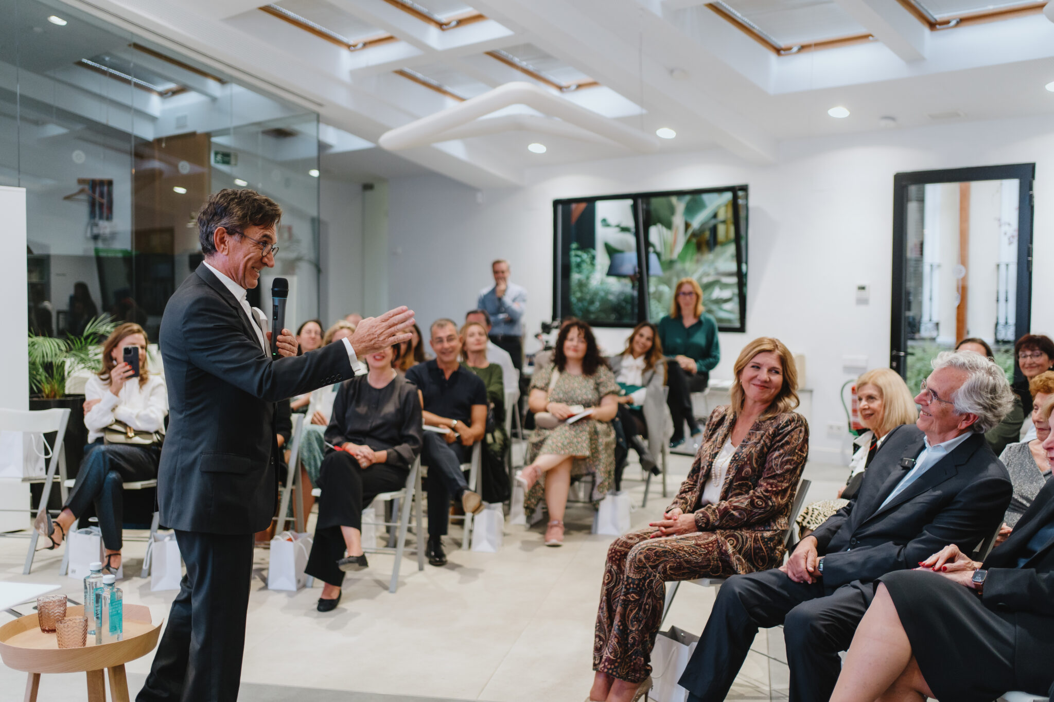 El presidente de la Academia del Perfume, Juan Pedro Abeniacar, presentó a Benaïm, destacando su legado y su vínculo con España, recordando anécdotas que vivieron juntos, pues tras décadas trabajando juntos –más allá de profesionales– se pueden considerar ya grandes amigos. Previamente, Val Díez, CEO del ecosistema Stanpa y vicepresidenta Ejecutiva de la Academia, había dado la bienvenida a la sede al grupo de unas cincuenta personas que no quisieron faltar a la emotiva cita, entre ellos Inés de la Riva, Fine Fragrance Sales Director de IFF en España, así como otros representantes de la compañía.