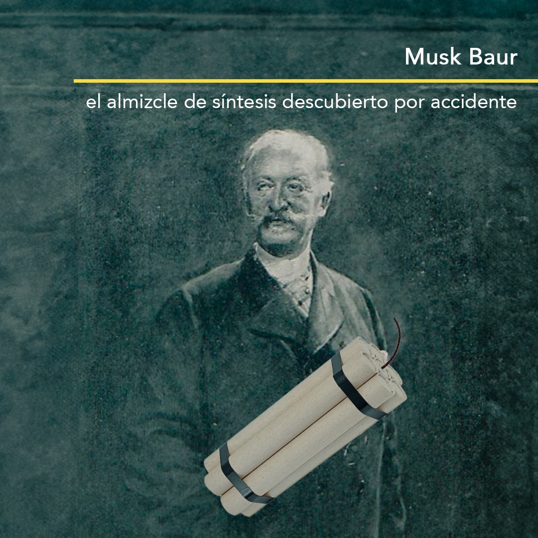 Esta innovación se produjo de manera accidental en el siglo XIX, cuando el químico Albert Baur estaba trabajando en la síntesis del 3-tert-butyltoluene. Su objetivo era encontrar un explosivo más eficaz que el TNT, pero en su experimento surgió algo sorprendente de un olor muy peculiar. En lugar de un explosivo, Baur había creado un nuevo almizcle sintético que se denominó «Musk Baur»